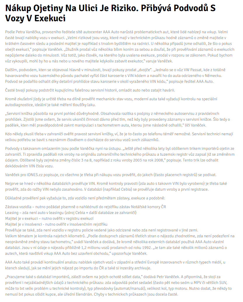 Každý rok končí v exekuci tisíce vozů. Kúpa ojazdeného vozidla je risk a s touto myšlienkou k celému procesu treba pristupovať. Do exekuce se může dostat téměř každý, jinak zcela bezúhonný člověk, i z velmi malicherných příčin. Na jednu takovou jsme se vypravili. Je pošmourné páteční dopoledne, stojíme před nově vybudovaným areálem skladů uprostřed polí, jen pár stovek. Následně se za výhodných podmínek prodají v dražbě. Podívejte se na jejich rady a přidejte do diskuze své zkušenosti. Myslím, že na to se nikoho neptala a je to čistě její věc.. Chceme predsa ušetriť, ak však …